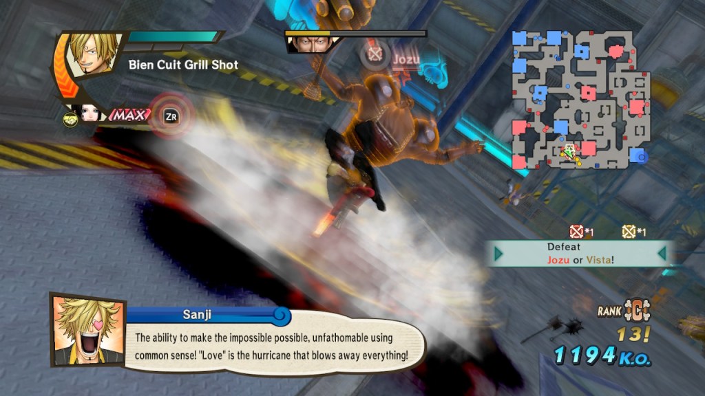 The characters in One Piece have a wide variety of powers, all of which have been replicated well within the gameplay. Every move and combo feels weighted, clearly showing all of the characters strengths and weaknesses. This allows players to approach varying playstyles, as it not only considers how you use them but also your strategies in different missions. They also added personality quirks unique to each character, such as Sanji’s reaction with female characters, which I appreciated.