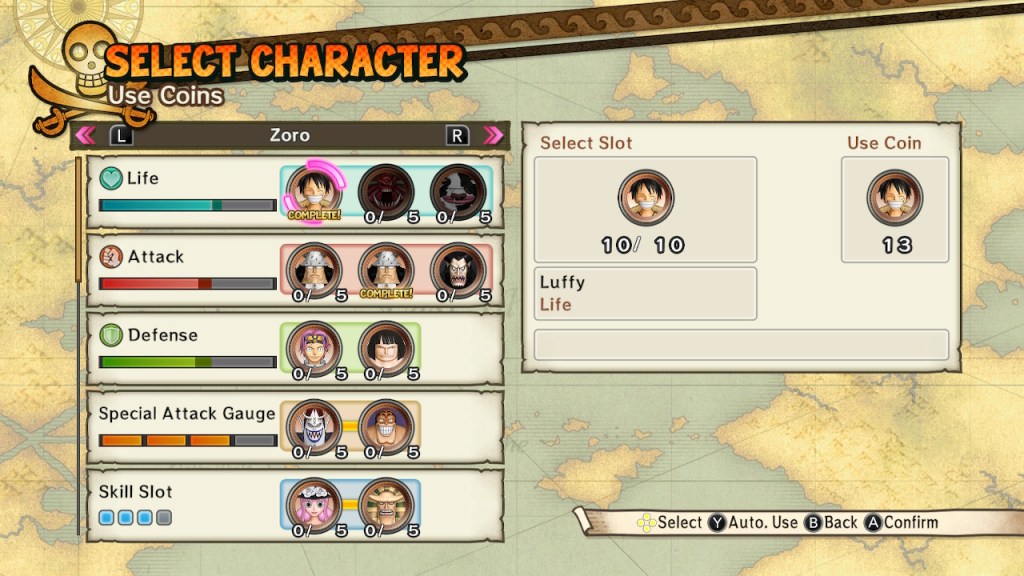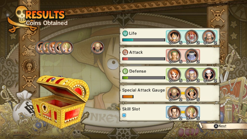 As previously mentioned, the main campaign covers the original storyline that are broken into different chapters. These mainly cover key events, such as the backstories of each Straw Hat member. The main story, however, is compressed into a short introduction before the main stage begins with the main boss.