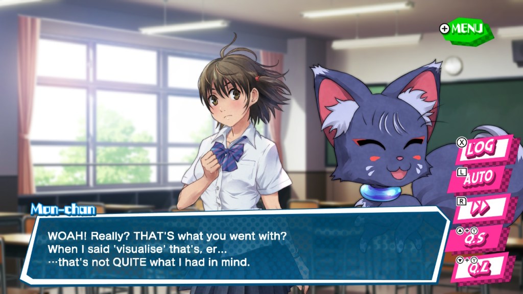 Kotodama: The 7 Mysteries of Fujisawa is a high school, mystery visual novel with tile-matching gameplay elements. You play a third-year transfer student who joins Fujisawa Academy along with your kitsune demon familiar, Mon-chan. Oh yes, this isn’t your normal high-school visual novel as you have a demon contract that allows you to use the power of Kotodama, allowing you to reveal the truth in people.